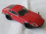| Massstab | 1:43 |  durchsichtige Scheiben, schwarzes Interieur, Scheibenwischer, Heckblende, Kotflügelverbreiterungen und Rückspiegel auf den Kotflügeln montiert. In silber eingefärbte Details wie Scheibenrahmen, Stossstangen, Türgriffe und Embleme. Kolorierte Lichter mit Glasabdeckungen auf den Scheinwerfern. Rechtslenker Japan-Strassenvariante. Schwarze 8-Steg-Felgen mit Profilgummi-Reifen. Fahrzeug aus der Die-Cast Oldies-Serie