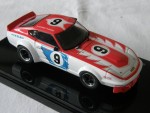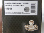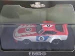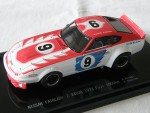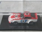 | Massstab | 1:43 |  durchsichtige Scheiben, schwarzes Renninterieur, Rückspiegel an der A-Säule rechts montiert, samt Luftzufuhrschlauch links an der Seitenscheibe, Scheibenwischer, Scheibenrahmen und Heckblende. Aufgesetzter Heckspoiler, Kotflügelverbreiterungen, Scheinwerferabdeckungen und Frontstossstange in Wagenfarbe, hinten nicht montiert. Rot-weisse 2-Farbenlackierung mit blauem Streifen auf den Türen, mit der schwarzen Startnummer 9 auf der Motorhaube, den Seiten und dem Dach. Kolorierte Rückleuchten. Silber-graue 4-Steg-Felgen mit Gummi-Reifen. Rennfahrzeug der 1000-km Langstrecken-Meisterschaft von 1973, vom Fuji-Raceway, mit den Fahrern M. Hasemi und K. Hoshino. Fahrzeug aus der Die-Cast Racing-Serie