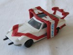 | Massstab | 1:43 |  bläuliche, durchsichtige Scheiben, als Interieur eine ausfahrbare Kanzel mit roter Astronautenfigur. Um das ganze Fahrzeug ein roter Streifen. Zusammenfaltbare, rot-weisse Flügel und 2-strahligem Raketenantrieb auf der Heckklappe. In der Front zwei Dornen, die einen Ausfahrmechanismus der Kanzel aus dem Dach auslösen. Kolorierte Lichter mit grauen Abdeckungen auf den Scheinwerfern. Schwarze Stahlfelgen mit Gummi-Reifen. Fahrzeug zeigt den Manga-Aktor "Mach Baron" in seinem Flight-Z aus Japanischer Trickfilmserie