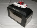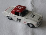 | Massstab | 1:43 |  2-sitziges, mit rotem Hart-Top geschlossenes Convertible und schwarzem Interieur inkl. Überrollbügel. Silberne Rückspiegel auf den Kotflügeln montiert. Einem Rennpisten Fahrzeug nachempfunden mit Werbeaufklebern und der Startnummer 38 des Fahrers "M. Okimura". Mit einfarbiger Karosserie und silbernen Elementen beim Kühlergrill, Scheibenwischern, Türgriffen und den Scheinwerfern. Kolorierte Lichter. Silberne 8-Steg-Felgen und Profilgummi-Reifen