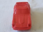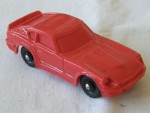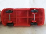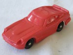 einfarbiges Plastik-Modellauto auf Basis einer Corgi-Karosserie. Schwarze Kunststoff-Räder-Achsen-Einheit. Sehr einfaches Kinderspielzeug