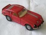 | Massstab | 1:43 |  durchsichtige Scheiben, weisses Interieur, roter Überrollbügel, mit Reserverad im Kofferraum und zu öffnenden Türen. Chromstossstangen, vorne mit vier Zusatzscheinwerfern und Steuerrad. Als Strassenfahrzeug überarbeitet mit weiss-schwarz karriertem Streifen über dem ganzen Auto, als Basis diente die Rally-Variante mit schwarz eingefärbten Details wie "Datsun 240 Z" auf den Seiten und der Heckklappe. Kolorierte Lichter. Chrom-10-Steg-Felgen mit Gummi-Reifen