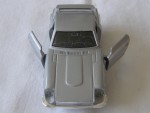 durchsichtige Scheiben, schwarzes Interieur und zu öffnenden Türen. Chromstossstangen hinten und vorne komplett sowie Bodenplatte. Glasscheinwerfer vorne. Schwarze Felgen mit Chrom-Zierring und Hartplastikräder