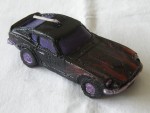 Kerze, gegossen aus einer Form des Corgi Whizzwheels Models eines Datsun 240 Z. Werk von Martin Eichelberger sel. mit guter Erinnerung an einen tollen Freund