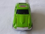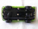 blaue, nicht durchsichtige Scheiben. Chromkühlergrill-Stossstangen-Heckleuchteneinheit vorne und hinten. Blechmodellauto mit groben Details. Schwarze 5-Steg-Felgen mit Hartplastikräder und Schwungradantrieb |