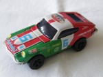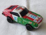| Massstab | 1:43 |  blaue, nicht durchsichtige Scheiben. Chromkühlergrill-Stossstangen-Heckleuchteneinheit vorne und hinten. Auf der rot-weissen Motorhaube die Aufdrucke "Fairlady Z" und die blaue Startnummer 6. Auf den Seiten die weiss-gelb-blauen Aufdrucke "Nissan Fairlady Z" sowie die Startnummer 6 und Werbeaufdrucken. Blechmodellauto mit groben Details, mit kolorierten Scheinwerfern. Schwarze 5-Steg-Felgen mit Hartplastikräder und Schwungradantrieb