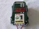 | Massstab | 1:43 |  durchsichtige Scheiben, rotes Interieur. Chromstossstangen hinten und vorne, die Scheinwerfer, zusätzlich mit Rammbügel mit 3 Zusatzscheinwerfern komplett. Zu öffnende, weisse Motorhaube mit Motorapplikation. An der Front eine braune Kette angebracht. Auf der Motorhaube Werbeaufkleber mit der schwarzen Startnummer 1. Auf den Seiten Werbeaufkleber von "Champion und STP", sowie die weiss-schwarze Startnummer 1. Auf dem Dach, auf der linken Seite, ein weiss-schwarzer Streifenkleber. Auf der Heckklappe den gelben Aufkleber "Cibié". Roter Schlepphacken im Heck. Weisse Bodenplatte. Chrom-5-Steg-Felgen durchbrochen mit Hartplastikräder.