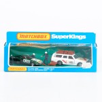 Fahrzeug aus der Lesney-Production-Super-Kings-Serie aus England und speziell dem K-52-Rally Set, zusammen mit einem Volvo Kombi-Werkstattwagen und 3 Mechaniker samt Werkzeug