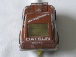 | Massstab | 1:43 |  durchsichtige Scheiben, gelb-schwarzes Interieur mit grünem Steuerrad. Chrom Stosstangen hinten und vorne mit Scheinwerfern und Rammbügel mit zwei Zusatzscheinwerfern komplett. Zu öffnende Motorhaube mit Motorapplikation. Kunststoffmodell aus Lizenz-Bulgaria-Produktion, auf Matchbox Super-Kings Basis. Diverse weisse Werbeaufkleber wie "Bosch, Abarth, Datsun, Nissan 2000 und Good-Year". Chrom-5-Steg-Felgen mit Hartplastikräder
