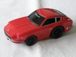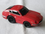 | Massstab | 1:34 |  schwarze, nicht durchsichtige Scheiben und angedeuteten Scheibenwischern, mit verzerrter Karossserie. In silber gefärbte Details wie Heckblende, Scheibenrahmen, Stossstangen und Embleme. Auf der Frontscheibe den weissen Aufdruck "Fairlady". Kolorierte Lichter. Strassenfahrzeug in der Z-L Version, mit dem 2000 ccm Motor für den Japanischen Markt. Schwarze 8-Steg-Felgen mit Profilgummi-Reifen und Pull-Back-Antrieb. Fahrzeug aus einem 9-teiligen Set dieses Fahrzeugs mit Originalfarben