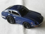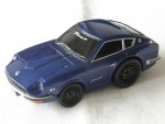 | Massstab | 1:34 |  schwarze, nicht durchsichtige Scheiben und angedeuteten Scheibenwischern, mit verzerrter Karossserie. In silber gefärbte Details wie Heckblende, Scheibenrahmen, Stossstangen und Embleme. Auf der Frontscheibe den weissen Aufdruck "Fairlady". Kolorierte Lichter. Strassenfahrzeug in der Z-L Version, mit dem 2000 ccm Motor für den Japanischen Markt. Schwarze Stahl-Felgen mit Profilgummi-Reifen und Pull-Back-Antrieb. Fahrzeug aus einem 9-teiligen Set dieses Fahrzeugs mit Originalfarben