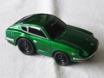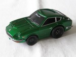 | Massstab | 1:34 |  schwarze, nicht durchsichtige Scheiben und angedeuteten Scheibenwischern, mit verzerrter Karossserie. In silber gefärbte Details wie Heckblende, Scheibenrahmen, Stossstangen und Embleme. Auf der Frontscheibe den weissen Aufdruck "Fairlady". Kolorierte Lichter. Strassenfahrzeug in der Z-L Version, mit dem 2000 ccm Motor für den Japanischen Markt. Schwarze Stahl-Felgen mit Profilgummi-Reifen und Pull-Back-Antrieb. Fahrzeug aus einem 9-teiligen Set dieses Fahrzeugs mit Originalfarben