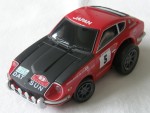 | Massstab | 1:34 |  schwarze, nicht durchsichtige Scheiben, Motorhaube und angedeuteten Scheibenwischern, mit verzerrter Karossserie. In silber gefärbte Details wie Heckblende, Scheibenrahmen, Stossstangen, mit 4 Zusatzscheinwerfern und Embleme. Dem 1972-er Rennfahrzeug der Monte-Carlo Rally, mit der Startnummer 5, der Fahrer Aaltonen/Todt, nachempfunden, mit Funkantenne auf dem Dach. Fernsteuerfahrzeug mit 40 MHZ Konfiguration. Kolorierte Lichter. Dunkelgraue, lenkbare 8-Steg-Felgen mit Gummi-Reifen