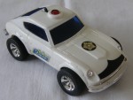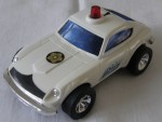| Massstab | 1:33 |  blaue, nicht durchsichtige Scheiben, mit verzerrter Karosserie und Heckjalousie. Chrom-Stossstangen, Scheinwerfer und Kühlergrill-Rückleuchten-Einheit. Einsatzfahrzeug der Japanischen Polizei mit rotem Drehlicht-Druckknopf für die Gangschaltung sowie Hoheitszeichen auf der Motorhaube und der Heckklappe. Auf den Seiten blau-gelb-silberner Aufkleber mit "2-Speed" und zwei gelben Sternen. Chrom-8-Steg-Felgen mit Profilgummi-Reifen und Schwungrad-Antrieb