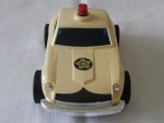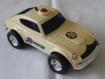 | Massstab | 1:33 |  blaue, nicht durchsichtige Scheiben, mit verzerrter Karosserie und Heckjalousie. Chrom-Stossstangen, Scheinwerfer und Kühlergrill-Rückleuchten-Einheit. Einsatzfahrzeug der Japanischen Polizei mit rotem Drehlicht-Druckknopf für die Gangschaltung sowie Hoheitszeichen auf der Motorhaube und der Heckklappe. Das weiss ist etwas vergilbt. Auf den Seiten ein rot-blau-gelber Aufkleber mit "2-Speed". Chrom-8-Steg-Felgen mit Profilgummi-Reifen und Schwungrad-Antrieb