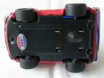 blaue, nicht durchsichtige Scheiben und verzerrte Karosserie als Blechauto. Chrom Scheinwerferabdeckungen und Stossstangen- rückleuchteneinheit. Chrom-6-Steg-Felgen mit Profilgummi-Reifen und Schwungradantrieb