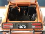 | Massstab | 1:24 |  durchsichtige Scheiben, schwarzes Interieur, Scheibenwischer und Heckblende. Chrom Stossstangen, Scheibenrahmen, Rückspiegel bei der A-Säule links montiert, Türgriffe und Embleme. Zu öffnende Türen, Motorhaube mit Motorapplikation und Heckklappe. Linkslenker Strassenauto für den USA-Markt. Kolorierte Lichter. Original Raddeckel mit Profilgummi-Reifen und lenkbaren Vorderrädern. Sehr detailliertes, filigranes Modelauto aus der limitierten Vintage Precision Model Collection