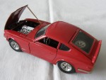 durchsichtige Scheiben, schwarzes Interieur. Aufgesetzter Heckspoiler in Wagenfarbe und Chromstossstangen hinten und vorne (komplett). Zu öffnende Türen, Motorhaube mit Motorapplikation und Heckklappe mit Reserverad im Kofferraum. Kolorierte Lichter. Chrom-6-Steg-Felgen mit Hartplastikräder |