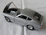 durchsichtige Scheiben, schwarzes Interieur. Aufgesetzter Heckspoiler in Wagenfarbe und Chromstossstangen hinten und vorne (komplett). Zu öffnende Türen, Motorhaube mit Motorapplikation und Heckklappe mit Reserverad im Kofferraum. Kolorierte Lichter. Chrom-6-Steg-Felgen mit Hartplastikräder