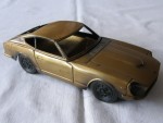 schweres Display-Model brüniert, mit abhebbarem Dach, aber ohne Scheiben-Einsatz. Darunter sind Mulden für Streichhölzer und Zigaretten. Früheres Präsent für verdiente Datsun/Nissan-Händler |