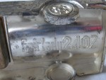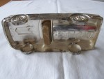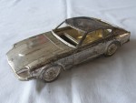 schweres Display-Model verchromt, mit abhebbarem Dach, aber ohne Scheiben-Einsatz. Darunter sind Mulden für Streichhölzer und Zigaretten. Früheres Präsent für verdiente Datsun/Nissan-Händler |
