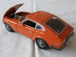 | Massstab | 1:18 |  durchsichtige Scheiben, schwarzes Interieur und silberne Heckblende. Chrom Scheibenwischer, Scheibenrahmen, Antenne, Stossstangen, Türgriffe und Embleme. Oranger Rückspiegel an der A-Sule montiert. Zu öffnende Türen, Motorhaube mit Motorapplikation und Heckklappe. Linkslenker-Strassen-Auto für den USA Markt. Kolorierte Lichter. Original-Raddeckel mit Profilgummi-Reifen und lenkbare Vorderräder. Detailliertes Die-Cast Fahrzeug