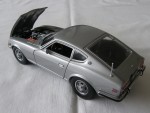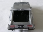 | Massstab | 1:18 |  durchsichtige Scheiben, schwarzes Interieur und silberne Heckblende. Chrom Scheibenwischer, Scheibenrahmen, Antenne, Stossstangen, Türgriffe und Embleme. Silberne Rückspiegel an der A-Sule montiert. Zu öffnende Türen, Motorhaube mit Motorapplikation und Heckklappe. Linkslenker-Strassen-Auto für den USA Markt. Kolorierte Lichter. Original-Raddeckel mit Profilgummi-Reifen und lenkbare Vorderräder. Detailliertes Die-Cast Fahrzeug