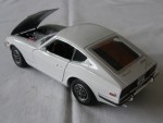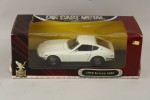 | Massstab | 1:18 |  durchsichtige Scheiben, schwarzes Interieur und Heckblende. Chrom Scheibenwischer, Scheibenrahmen, Rückspiegel links an der A-Säule montiert, Stossstangen, Türgriffe und Embleme. Zu öffnende Türen, Motorhaube mit Motorapplikation und Heckklappe. Linkslenker-Strassen-Auto für den USA Markt. Kolorierte Lichter. Original-Raddeckel mit Profilgummi-Reifen und lenkbare Vorderräder. Detailliertes Die-Cast Fahrzeug aus der Road-Signature-De-Luxe-Serie