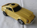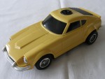 | Massstab | 1:20 |  schwarze, nicht durchsichtige Scheiben, Heckblende, Kühlergrill, Heckjalousie und Mikrofon-Rondelle auf dem Dach. Aufgesetzter Heckspoiler und Kotflügelverbreiterungen in Wagenfarbe. Chrom Stossstangen und Scheinwerfer. Aktion während dem batteriebetriebenem Modus mittels Klapper Handstück (nicht vorhanden). Kolorierte Rücklichter. Chrom-5-Steg-Tiefbett-Felgen mit Profilgummi-Reifen und lenkbaren Vorder-Rädern. Lizenz Ausgabe des baugleichen Produkts von TOMY Japan