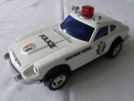 | Massstab | 1:16 |  blaue, nicht durchsichtige Scheiben und schwarze Kotflügelverbreiterungen. Heck-Jalousie in Wagenfarbe. Chrom Stossstangen, Scheinwerfer, Heckblende und Sirenen auf dem Dach. Einsatzfahrzeug der Highway Police Patrol mit rotem Drehlicht auf dem Dach und Hoheitszeichen. Kolorierte Rücklichter. Kunststoffauto mit batteriebetriebenem Anstossmotor. Chrom-4-Steg-Felgen mit Hartplastikräder