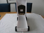 schwarze, nicht durchsichtige Scheiben und Stossstangen. Aufgesetzte Kotflügelverbreiterungen in Wagenfarbe. Dem rechtslenker Strassenfahrzeug für Japan nachempfunden. Karosserie kann individuell bemalt werden und angehoben, um Tomica Modellautos aufzubewahren. Silberne Originalraddeckel und Hartplastikräder. Kinderspielzeug |