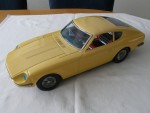 | Massstab | 1:10 |  durchsichtige Scheiben, farbiges Interieur mit weissem Steuerrad. Fahrzeug wird im Weissblech-Pressverfahren in mehreren Teilen geformt und mittels Lithographie bedruckt, ein Schwungrad-Antrieb verbaut und zusammengestellt. Farblose Blech Stossstangen-Kühlergitter-Einheit und Heckblende-Leuchten-Einheit, koloriert. Blaue Plastik-Scheinwerfer. Chrom-4-Doppelsteg-Felgen mit Hartplastikräder