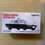 | Massstab | 1:64 |  durchsichtige Scheiben, schwarzes Interieur, angedeutete Scheibenwischer, Kühlergrill und Heckblende. Silberne Scheibenrahmen, Türgriffe und Embleme. Chrom Stossstangen. Kolorierte Lichter mit Glasabdeckungen. Rechtslenker Einsatzfahrzeug der Japanischen Polizei mit rotem Drehlicht auf dem Dach und Hoheitszeichen auf den Seiten und der Heckklappe. Schwarze Stahlfelgen mit Profilgummi-Reifen. Fahrzeug aus der detaillierteren Limited Vintage Neo Serie