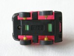verzerrte Kunststoffkarosserie mit Pearl-Effekt und mit schwarzer Stossstangen-Bodengruppeneinheit. Gelbe Scheiben-Räder, mit Gummi-Reifen und Pull-Back-Antrieb