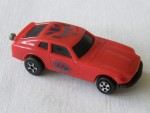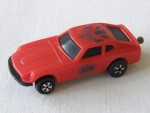 schwarze nicht durchsichtige Scheiben, Kühlergrill und Frontstossstange. Metallbodenplatte mit Abschussvorrichtung im Heck. Auf den Seiten ovaler, blau-schwarzer Aufdruck "STP". Auf dem Dach blau-schwarze Pfeil-Streifen. Plastik-Karosserie vergleichbar, mit Matchbox-Superfast. Unbekannte Aktion. Chrom-5-Steg-Felgen mit Hartplastikräder